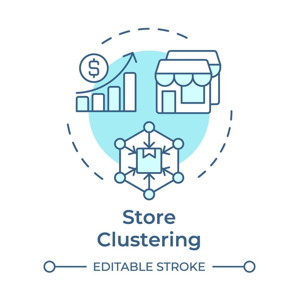 Store clustering soft blue concept icon. Divide stores into segments. Retail strategy. Marketing. Round shape line illustration. Abstract idea. Graphic design. Easy to use in presentation Pro Vector