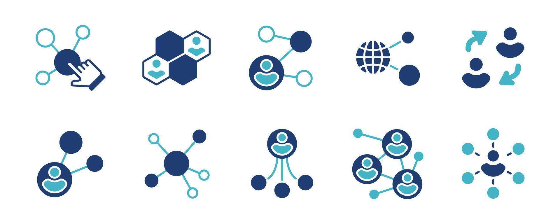 abstract molecular social business network icon set community partnership connection marketing link group illustration for web and app Pro Vector