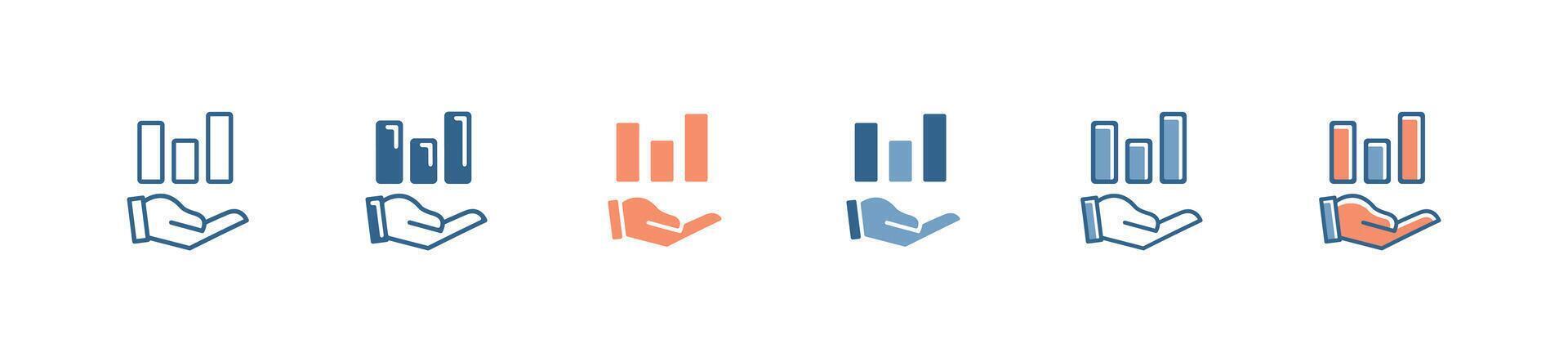 simple hand with simple bar chart icon datum analysis business profit performance growth outline symbol illustration for web and app Pro Vector