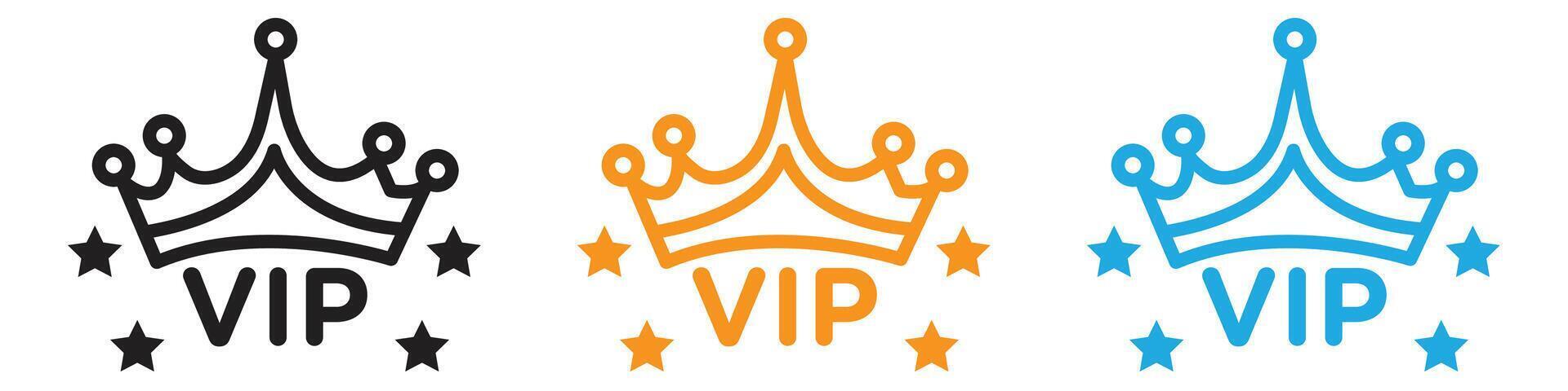 Vip text with crown logo set collection for web app ui Pro Vector