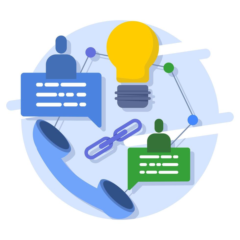 concept of communicating, connecting talk, conversation message, meeting or discussion, Communicating a solution to solve a problem, agreement, flat design icon illustration on background. Pro Vector