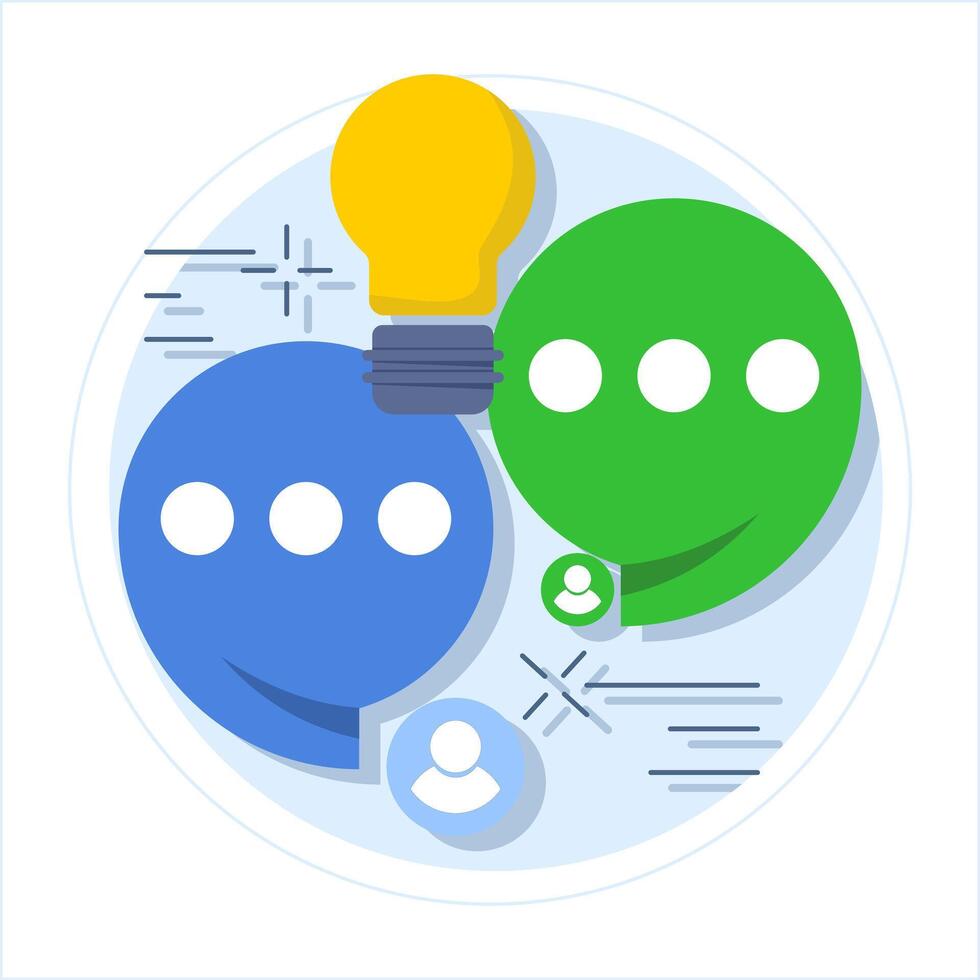 concept of communicating, connecting talk, conversation message, meeting or discussion, Communicating a solution to solve a problem, agreement, flat design icon illustration on background. Pro Vector