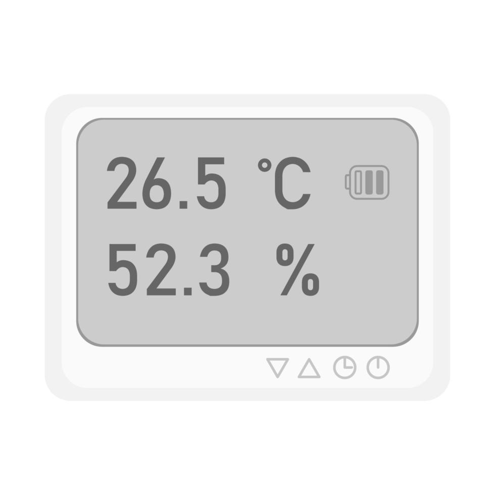 Wireless digital device for determining the humidity and temperature in the room. Thermometer and hygrometer with LCD screen showing degrees and percent humidity. Climate control monitor. Healthy home Pro Vector