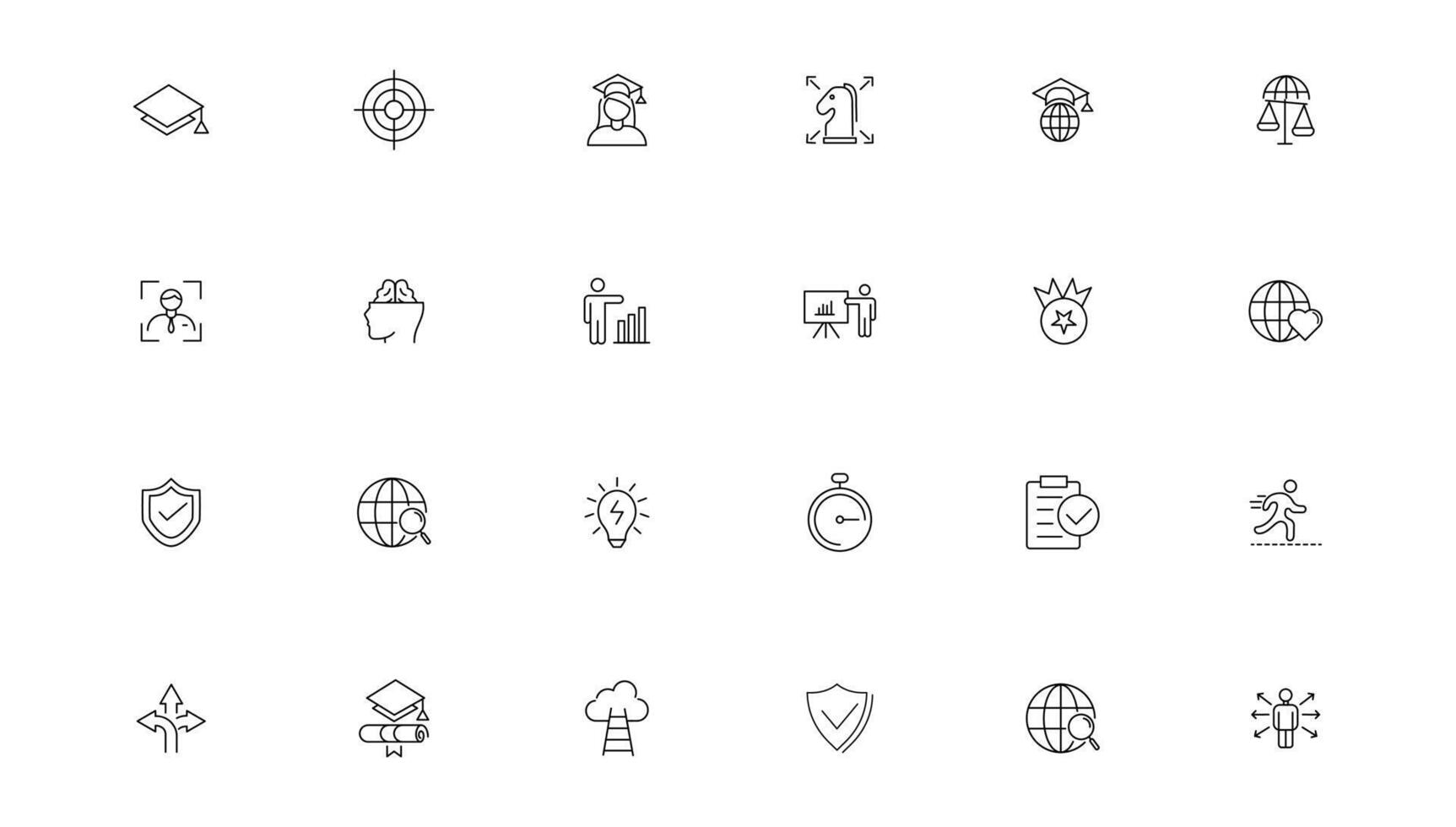 Set of icons core values. images with editable stroke. Includes such qualities as performance, passion, diversity, exceptional, innovative, accountability, will to win, empathy, open-minded. Pro Vector