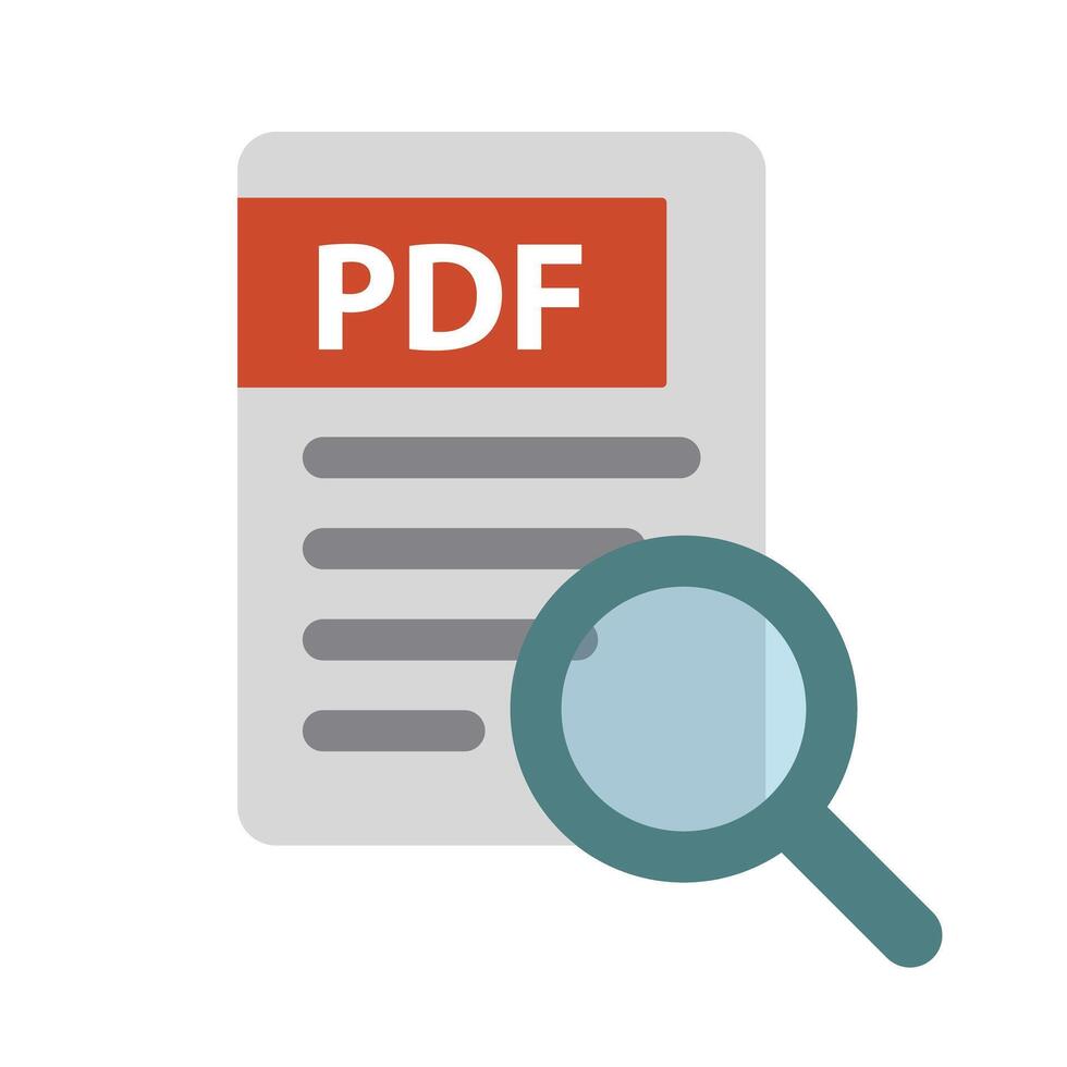 PDF document checking. Business document verification. pdf icons and magnifying glass icons. Pro Vector