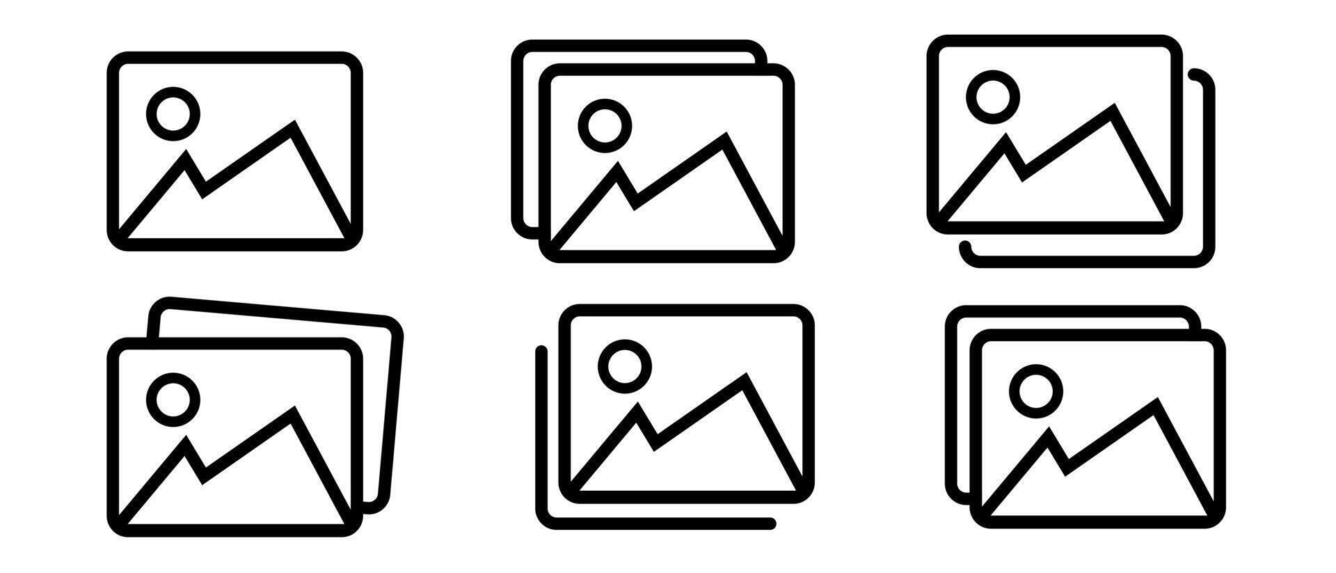 Email sign. Set of gallery icons, photo album or image symbol. Thin outline photo gallery icons for web and mobile apps. Pro Vector