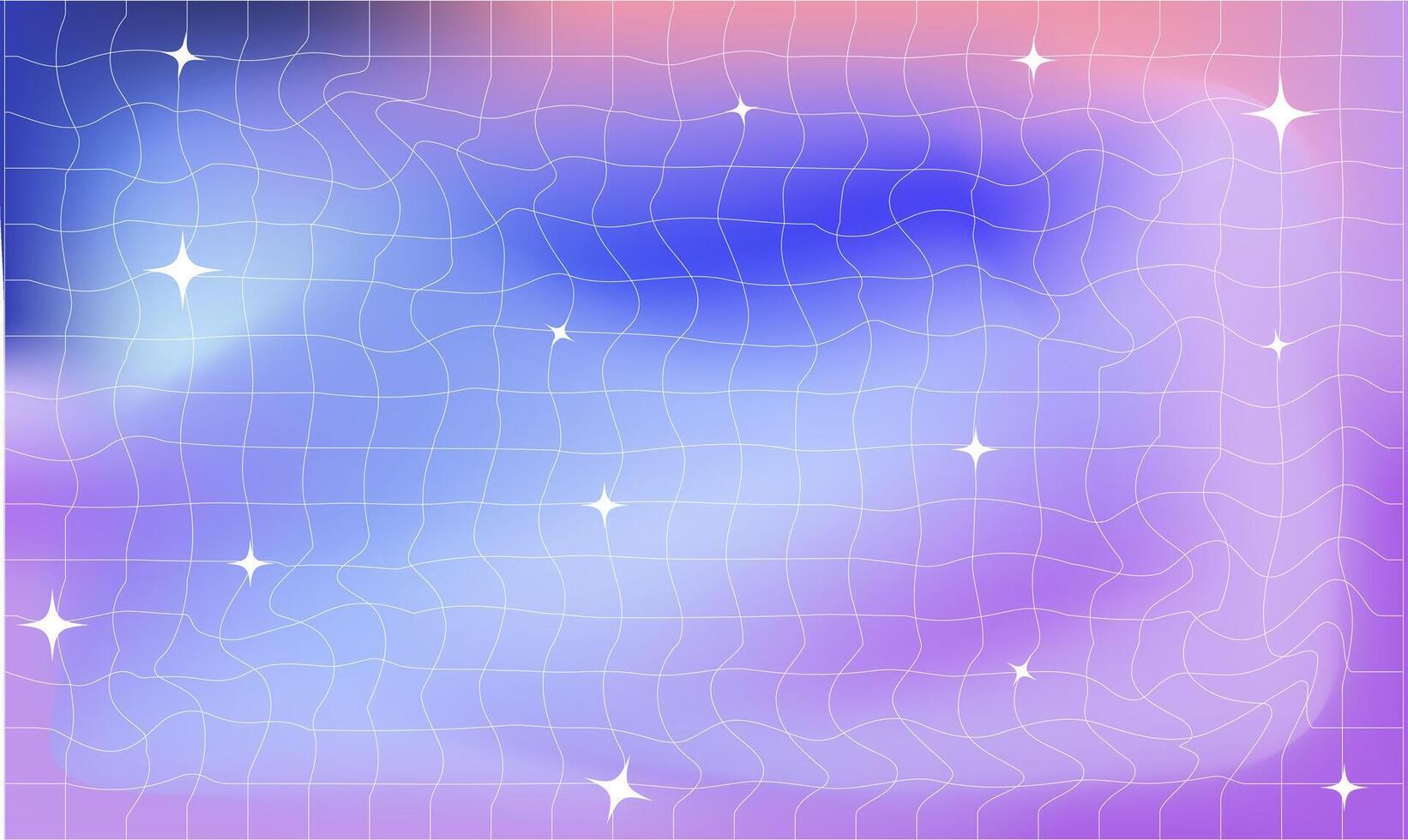 Groovy retro checkered wavy background. Stylish holographic backdrop with gradient mesh and stars. Pro Vector