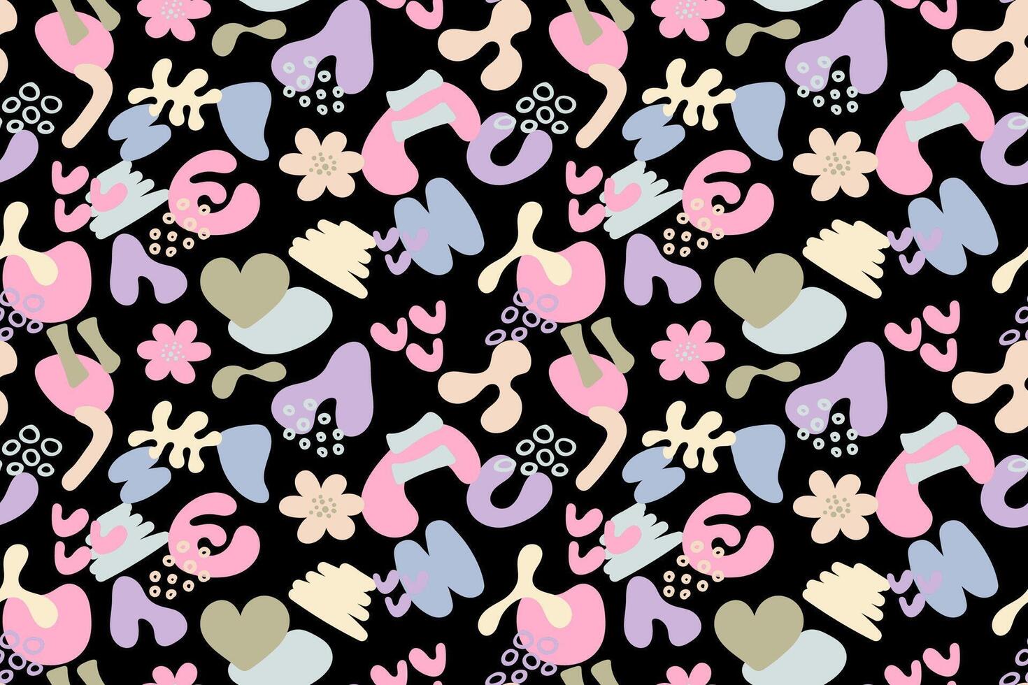 Pastel doodle and organic shapes seamless pattern. Fun scribble various geometric shapes pattern. Childish scribble shape pattern Pro Vector