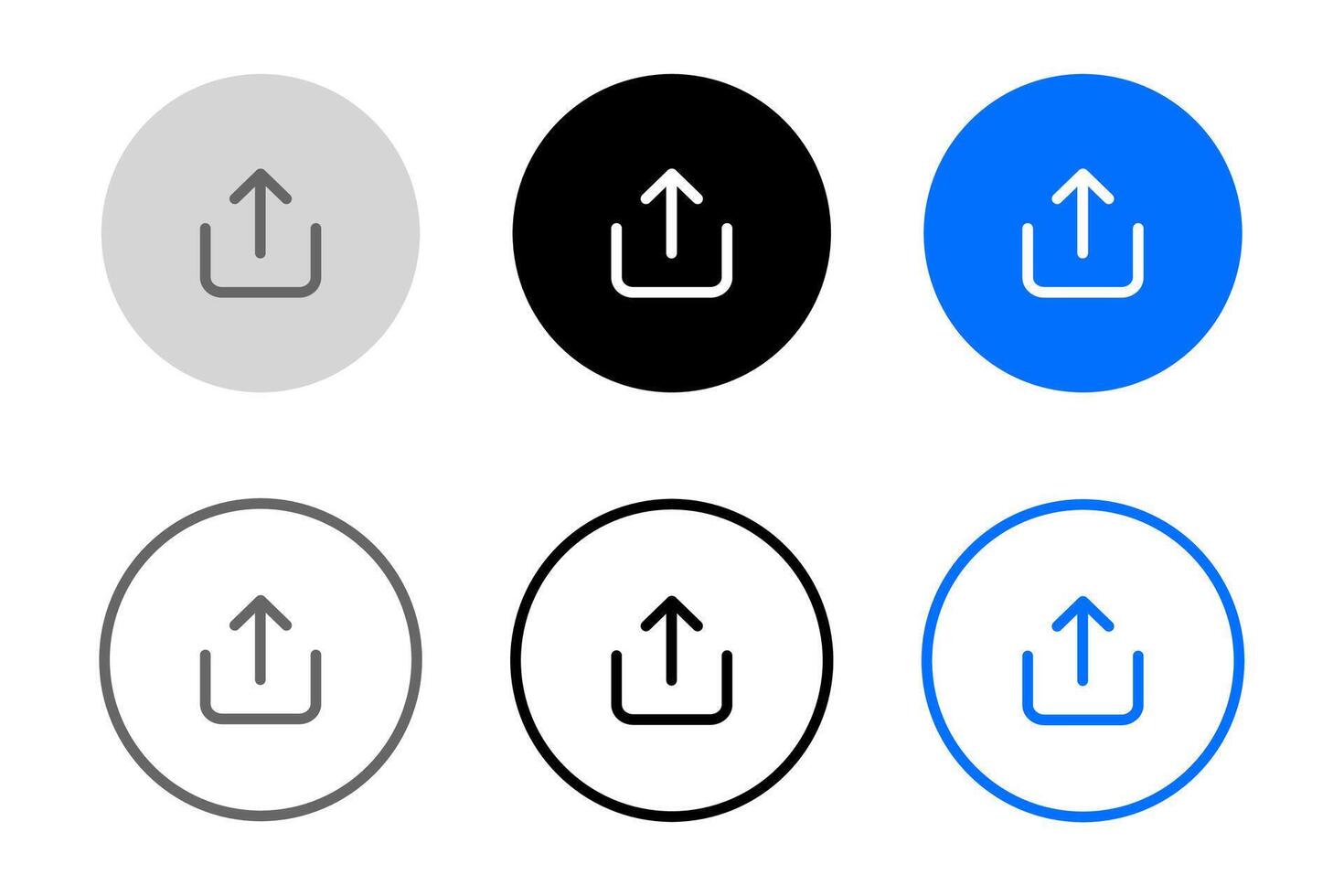 Share icon. Interface button sign. Upload symbol. Share arrow icon. Grey, blue and black button. Pro Vector