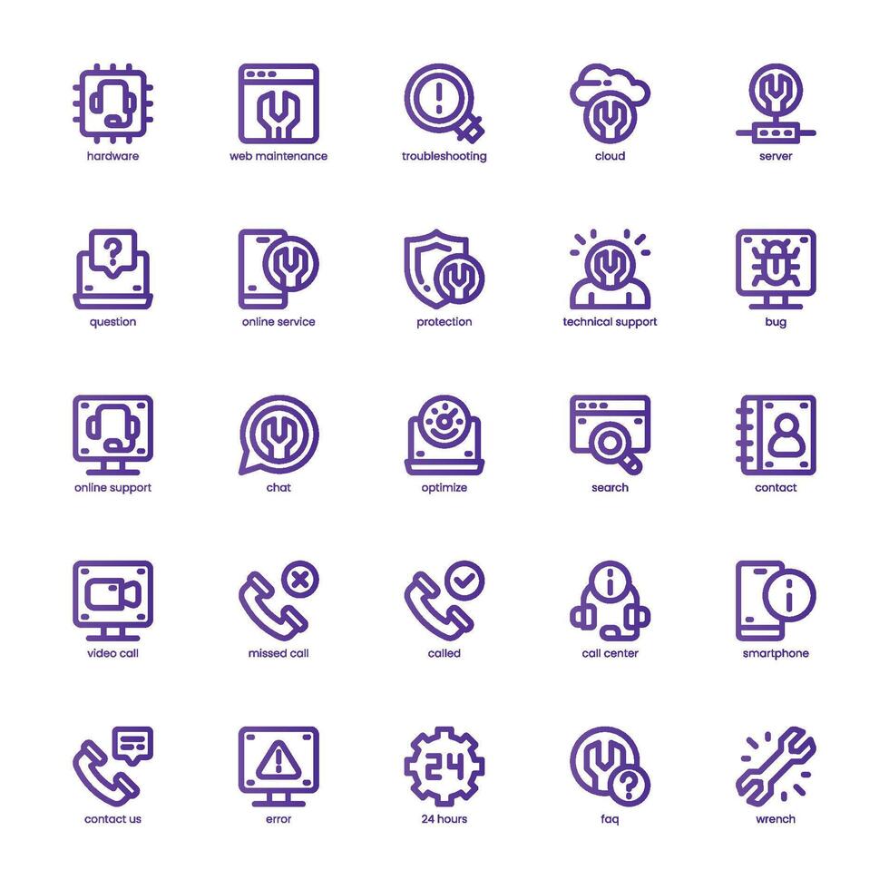 Tech Help and Support icon pack for your website, mobile, presentation, and logo design. Tech Help and Support icon basic line gradient design. graphics illustration and editable stroke. Pro Vector