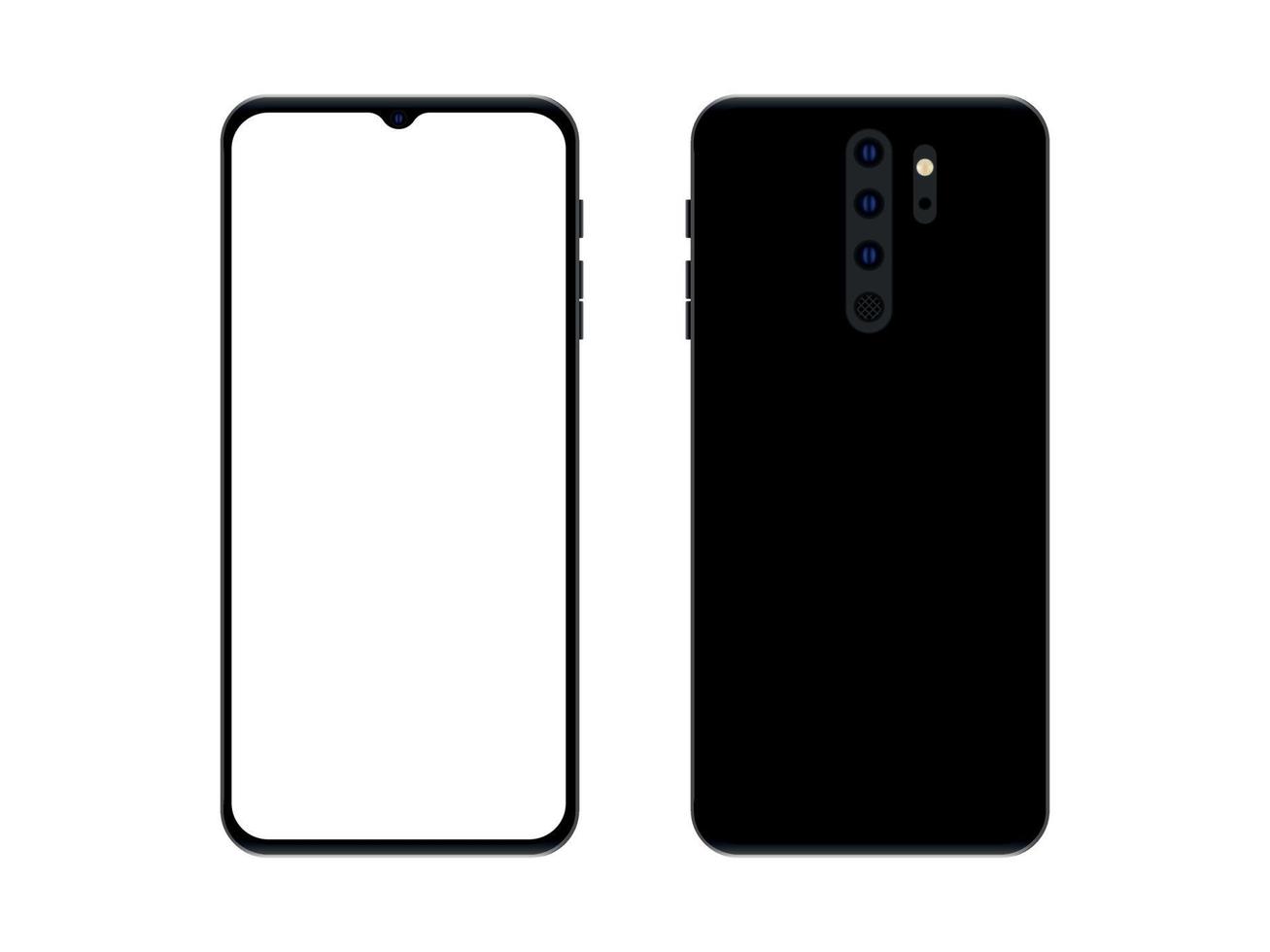 Realistic smartphone mockup with empty screen. Front and back view for print, web, application. Vector Pro Vector