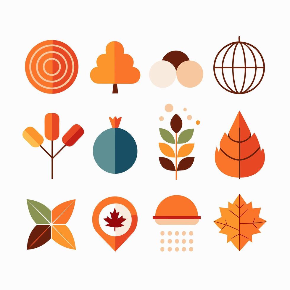 An array of autumnthemed icons set against a white backdrop Pro Vector