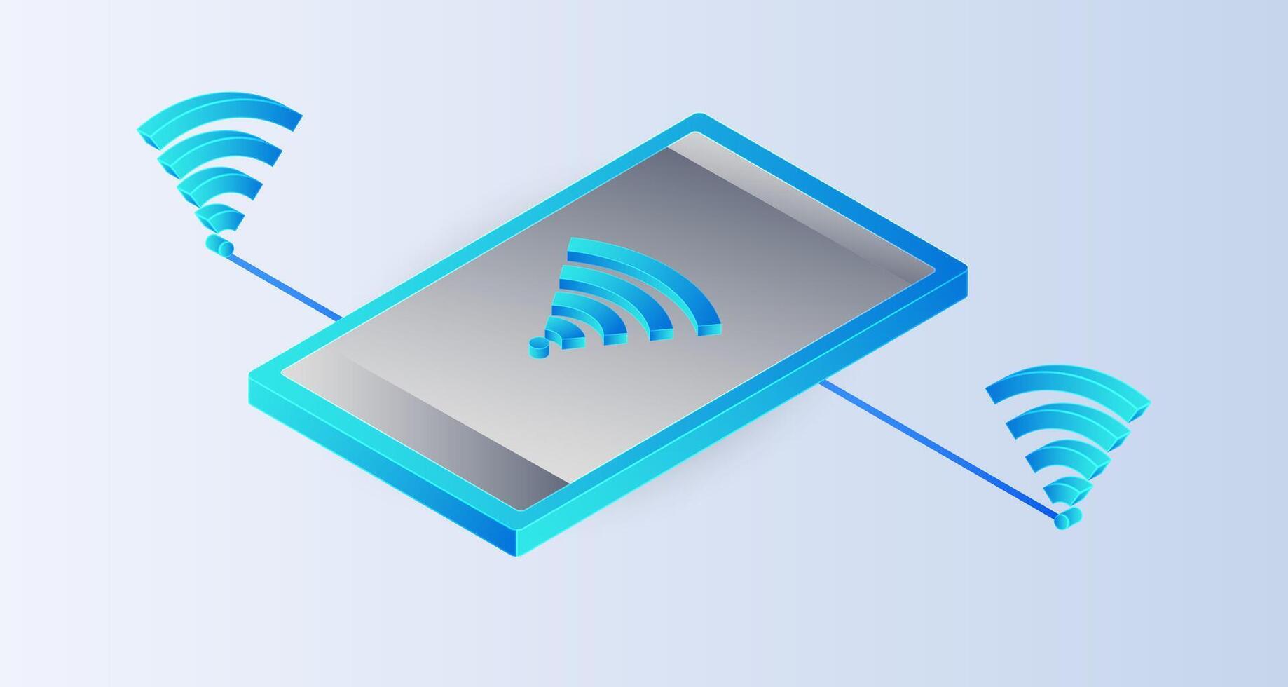 Isometric smartphone with wifi signal on white background. Wireless connection and sharing internet Pro Vector