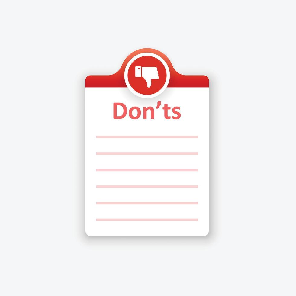 Negative list or planning icon in flat style. Paper sheet with cons clipboard illustration on isolated background. Checkbox plan sign business concept. Pro Vector