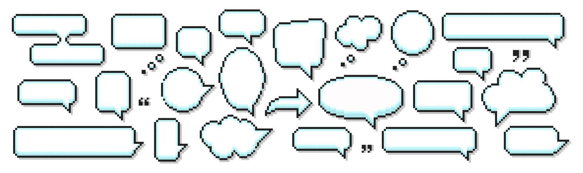 8 bit pixel speech bubbles and dialog boxes. Message icons for computer game. illustration. Pro Vector