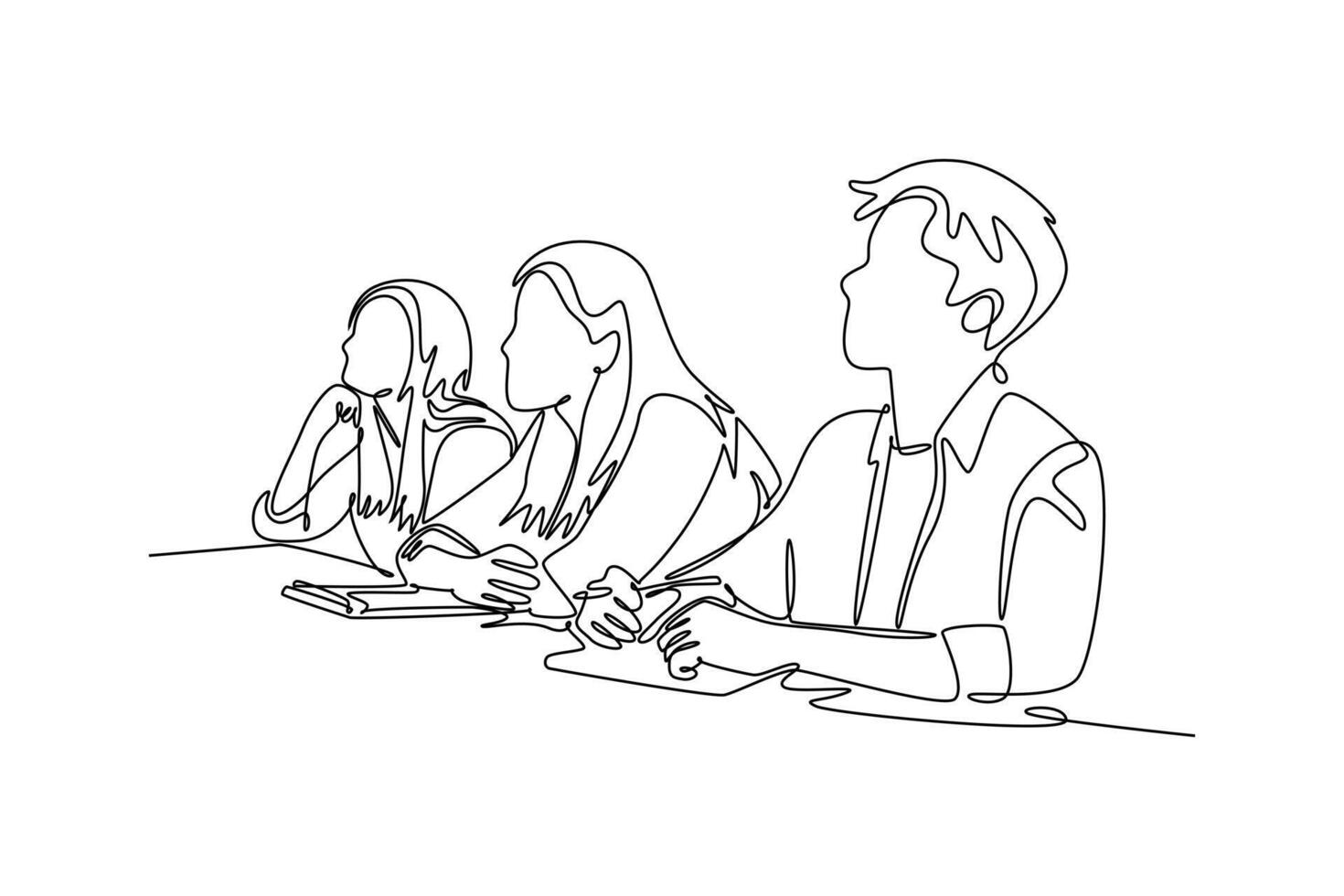 Lecturers teaching in class concept. Single line draw design graphic illustration. Pro Vector