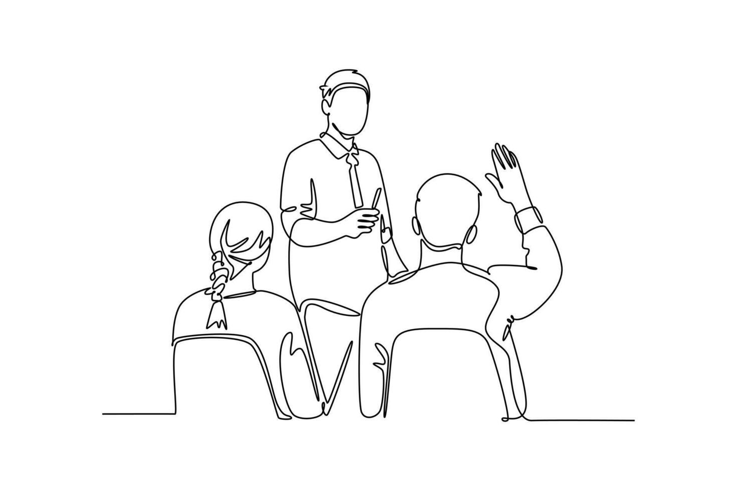 Lecturers teaching in class concept. Single line draw design graphic illustration. Pro Vector