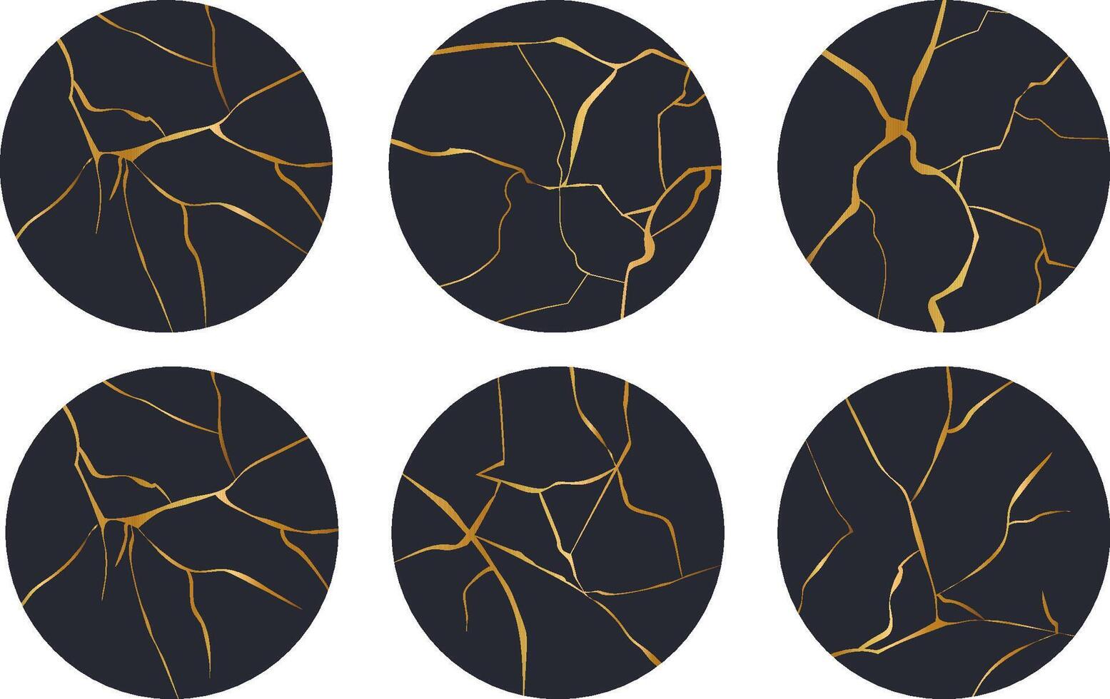 Highlight cover circle Kintsugi gold simple break lines, asian geaometric crackle. Social media frame surface with crack print, effect. Moderm cover golden broken texture. Pro Vector