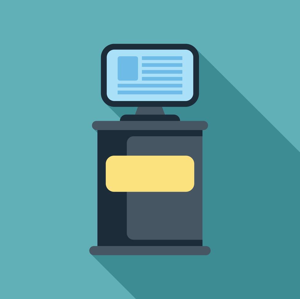 Interactive digital kiosk displaying information on a monitor Pro Vector