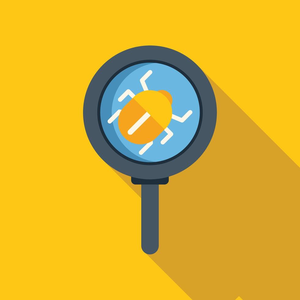 Magnifying glass showing a bug for debugging software and websites Pro Vector