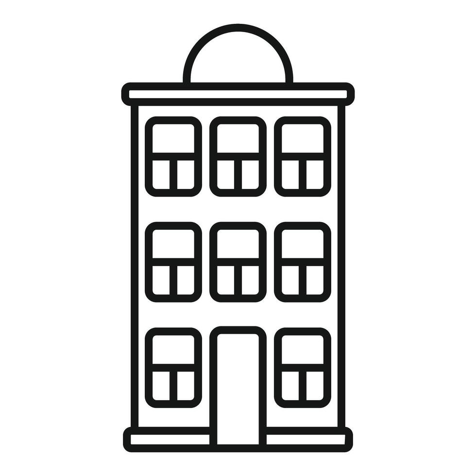 Three storey building with attic and round roof window is standing on white background Pro Vector