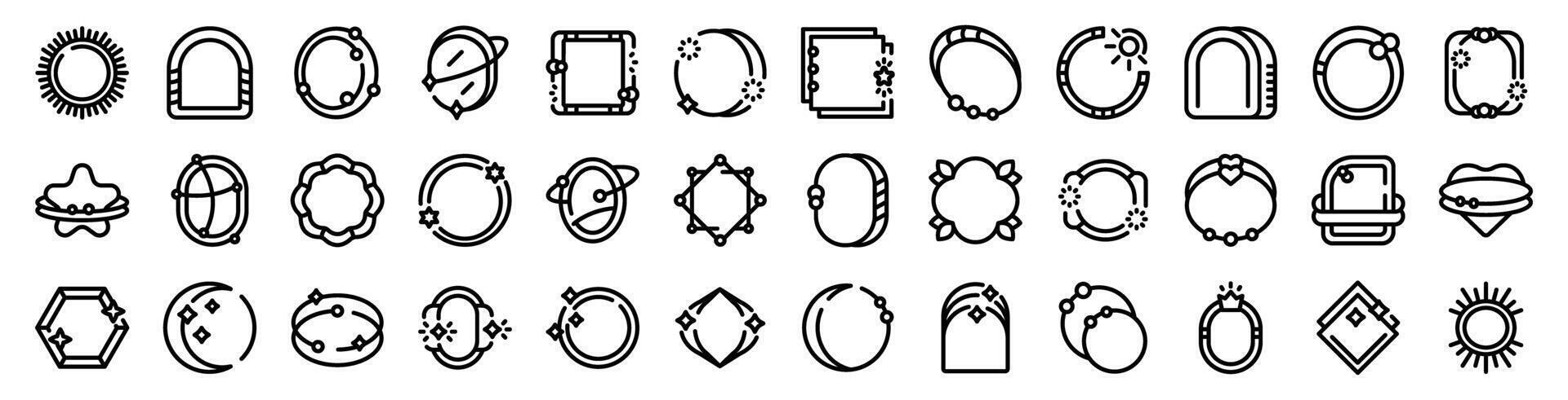 Element frame aesthetic icons set. Set of space frames with planets, stars, and geometric shapes for social media content Pro Vector