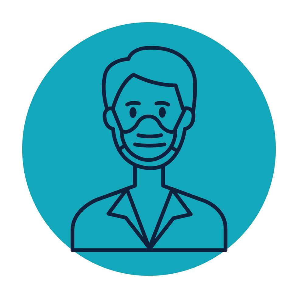 man using face mask in frame circular vector