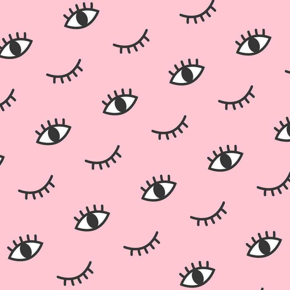 Blink Eye Black Eyelash Pattern Pink Background Pro Vector