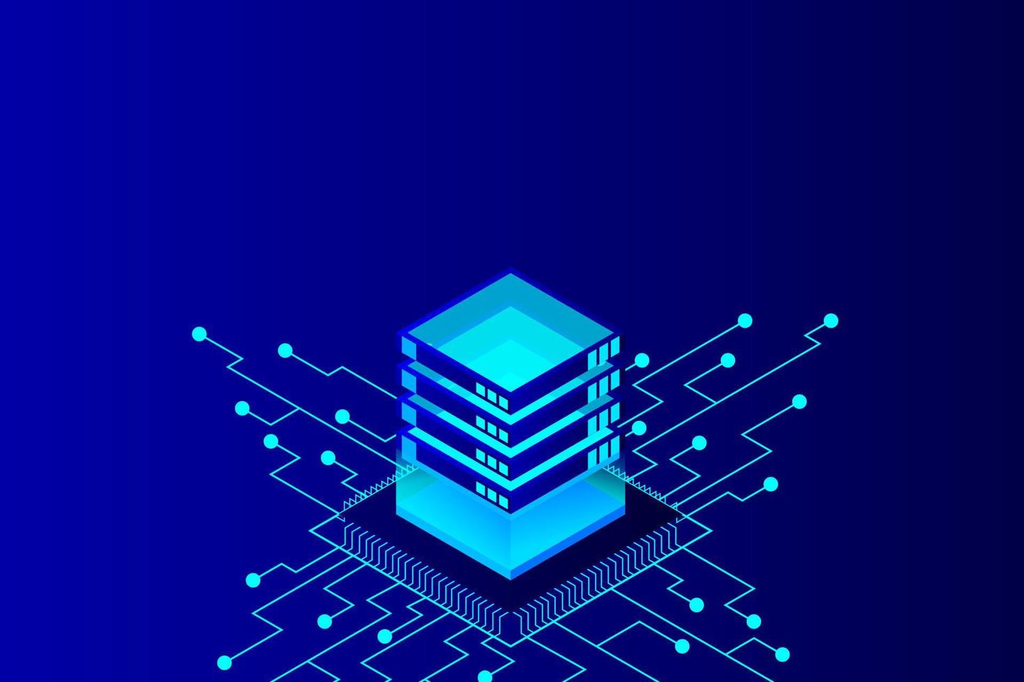 Concept of big data processing energy station of future server room rack data center Pro Vector
