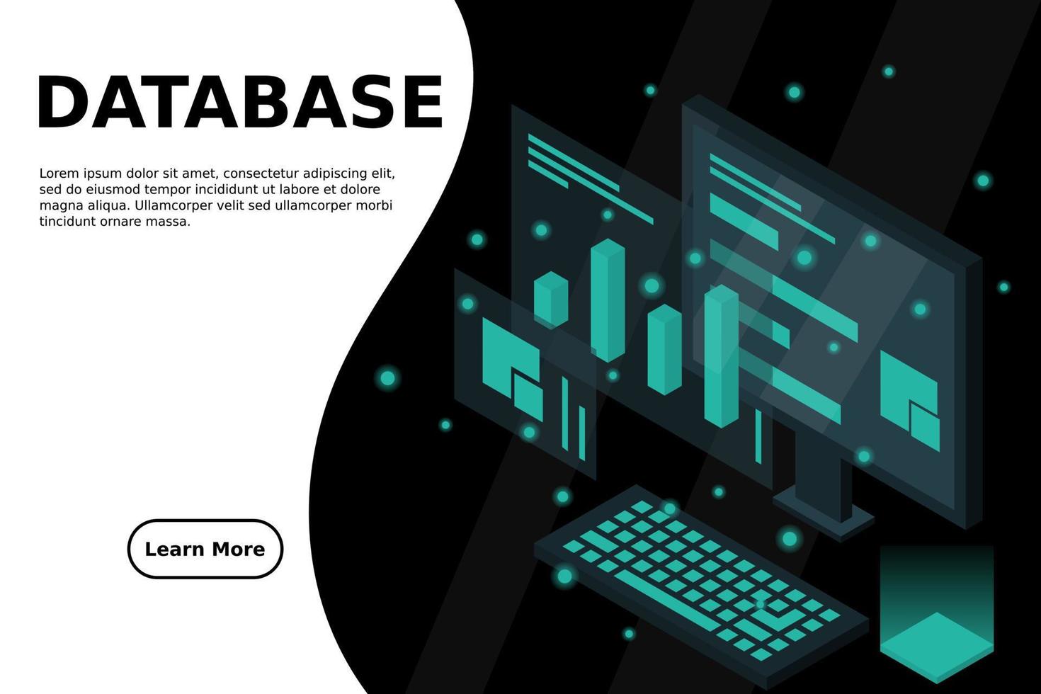 Data analysis in isometric vector design. Technician in datacenter or data center room background. Network mainframe infrastructure website layout Pro Vector