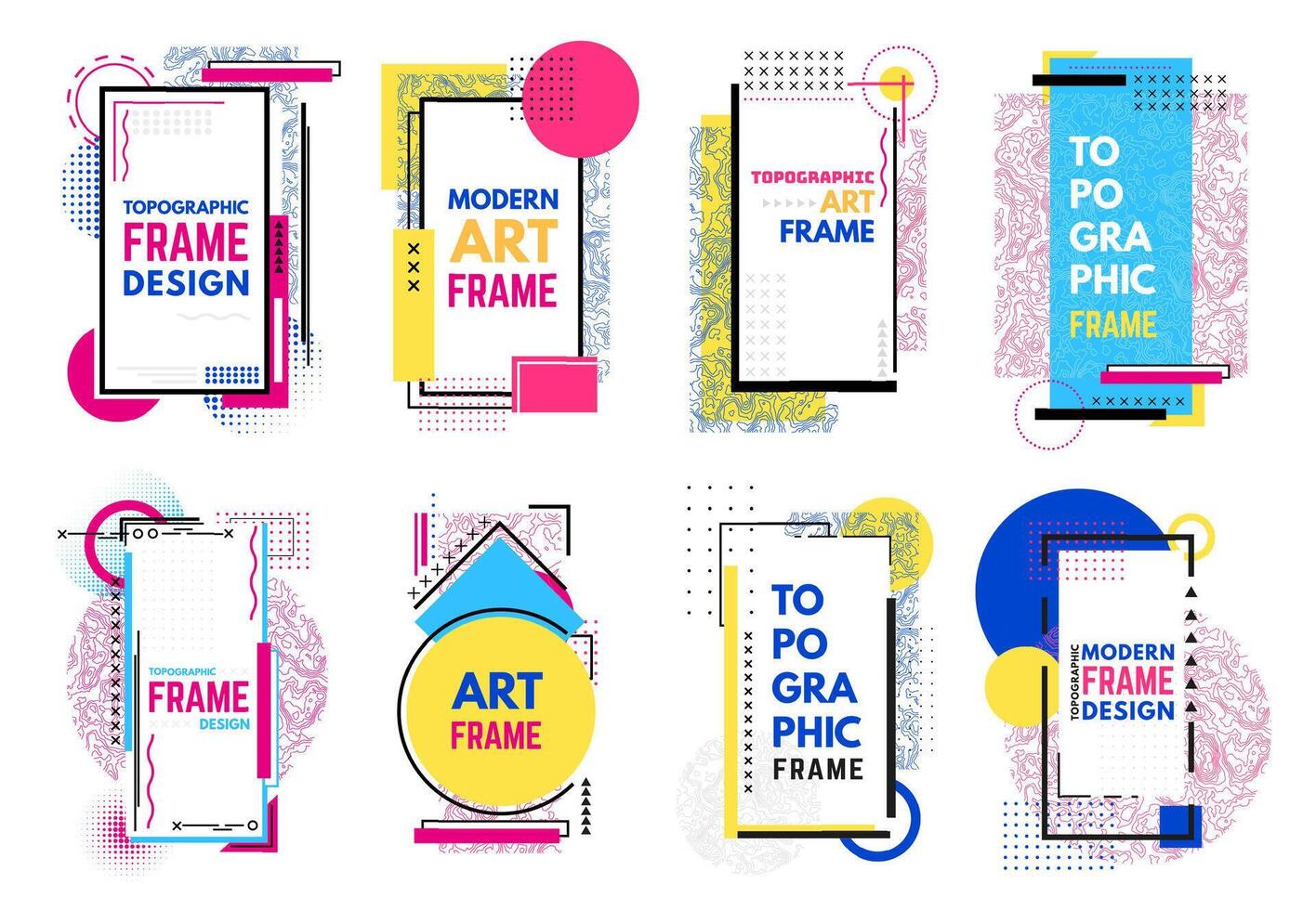 Topographic frame design. Modern graphic art collage, abstract geometry borders layout template for banners and minimalistic posters set Pro Vector