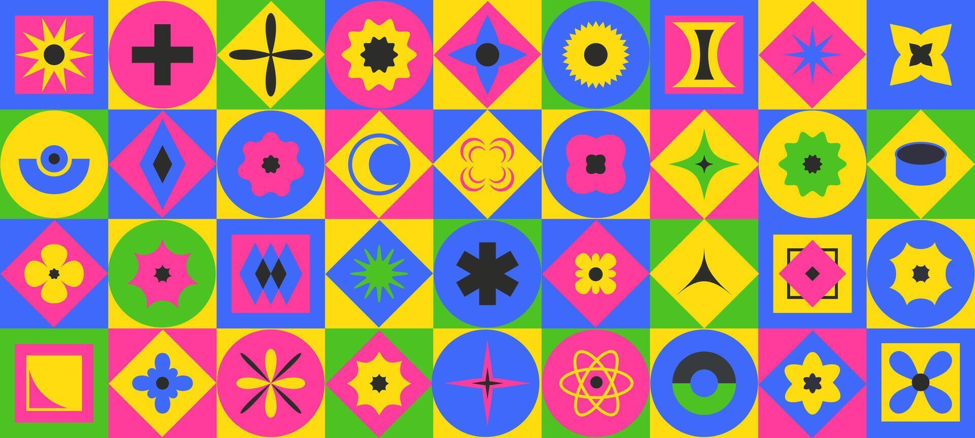 Brutalism form blocks. Abstract simple geometric shapes grid, bold minimalism pattern background Pro Vector