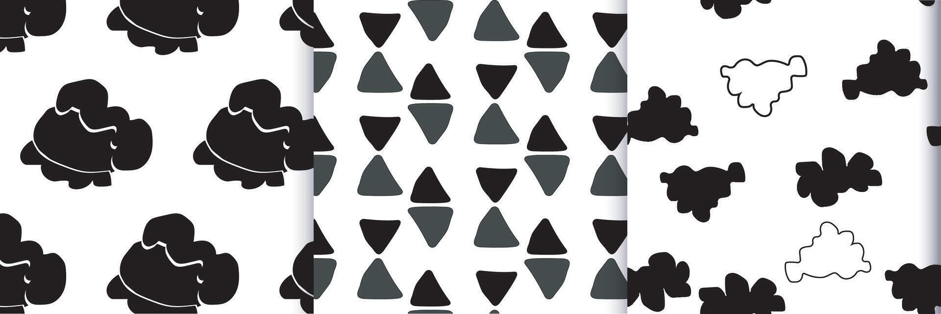 Set of hand drawn Black and white geometric pattern repeating abstract background vector