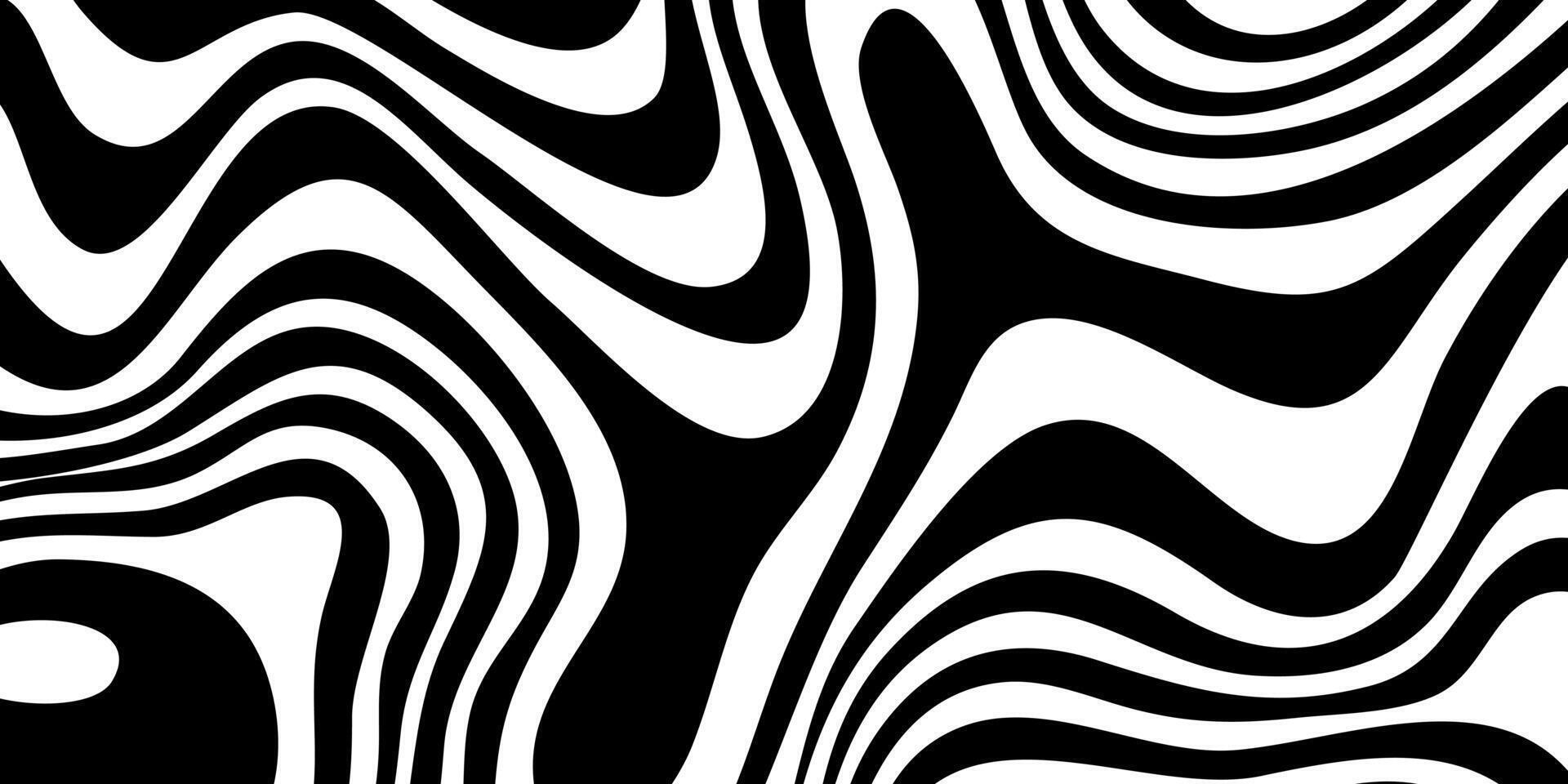 Zebra wavy pattern. Distorted black and white striped background. Psychedelic retro background Pro Vector