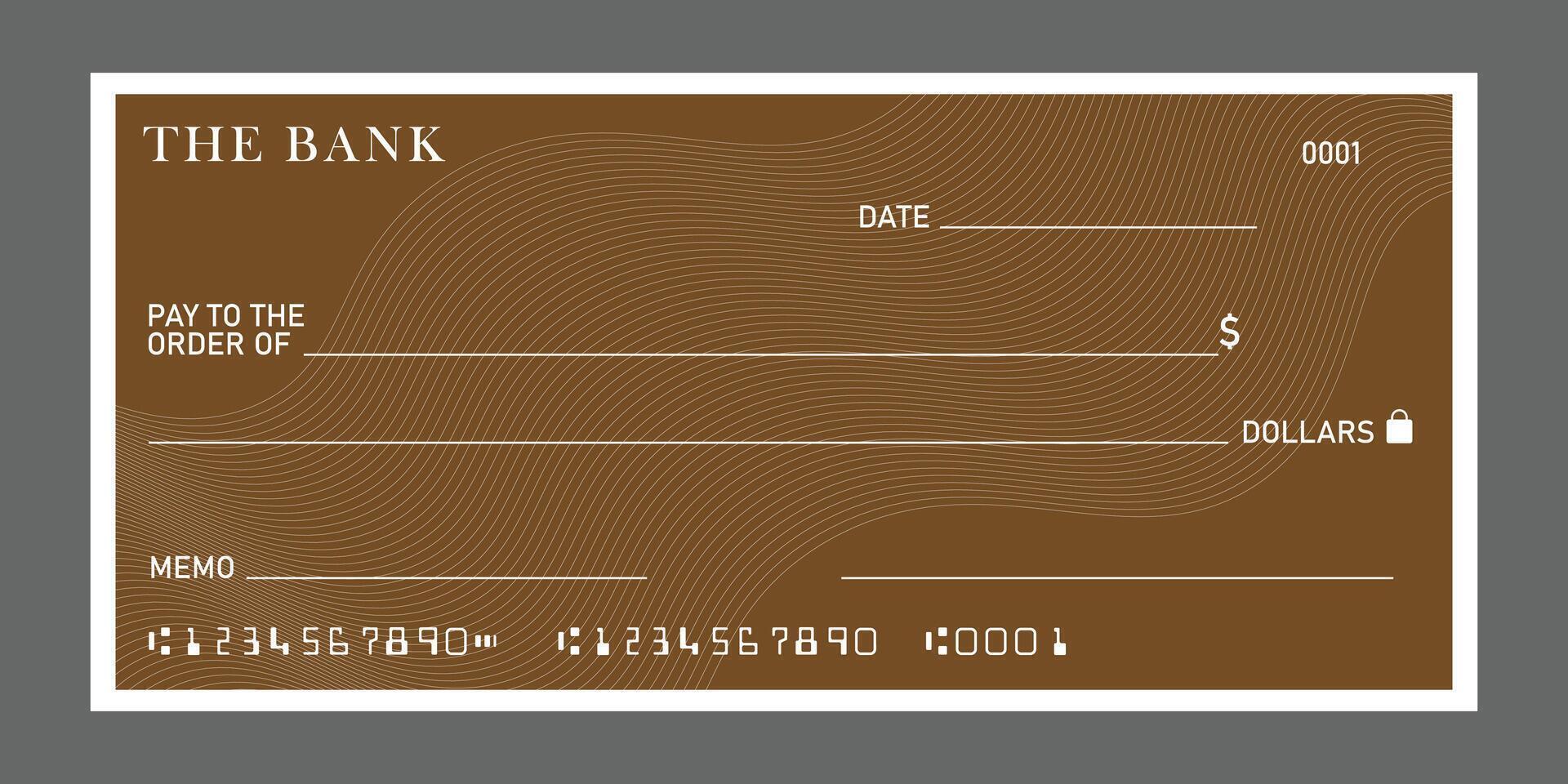 Blank bank cheque with abstract pattern. Personal desk check mockup template with empty field to fill. . vector