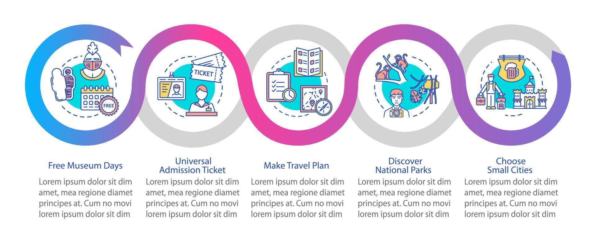 Tips for travelers vector infographic template. Budget vacation presentation design elements. Data visualization with five steps. Process timeline chart. Workflow layout with linear icons Pro Vector and Pro SVG