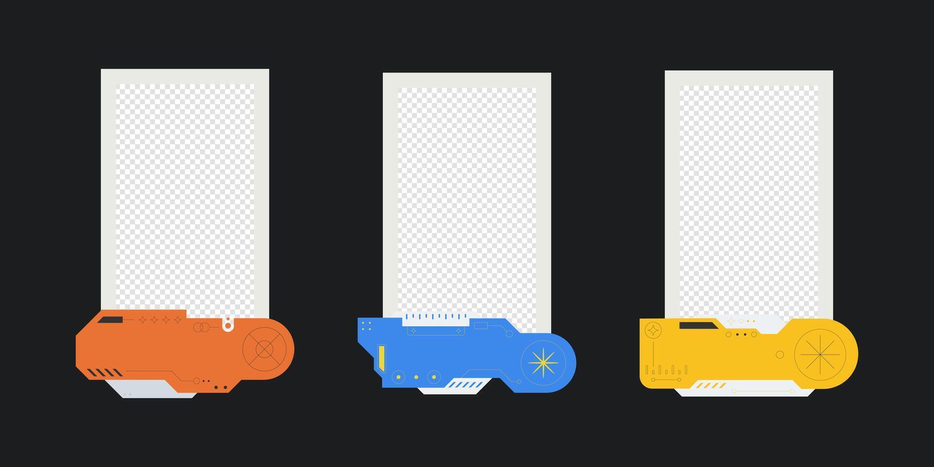 Collection of player frames template. Cyberpunk style. Game card frame mockup template design. Pro Vector