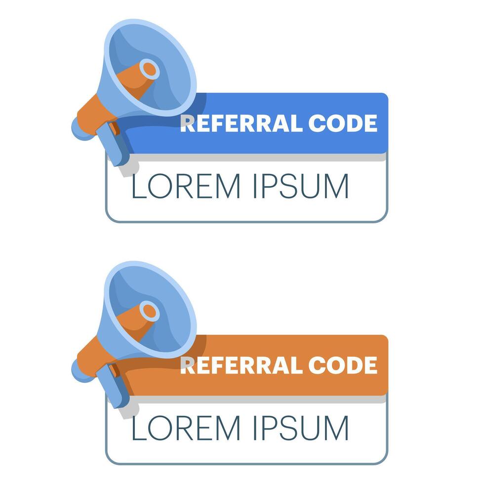 referral code text template concept. share, refer a friend, referral program. Attract friends. referral marketing strategy, landing page, mobile app, flat illustration on background. Pro Vector