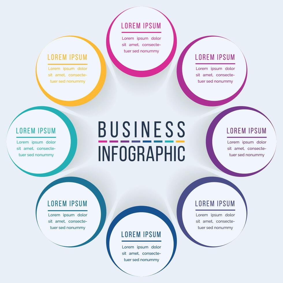 Circle Infographic design 8 steps, objects, elements or options business information Pro Vector
