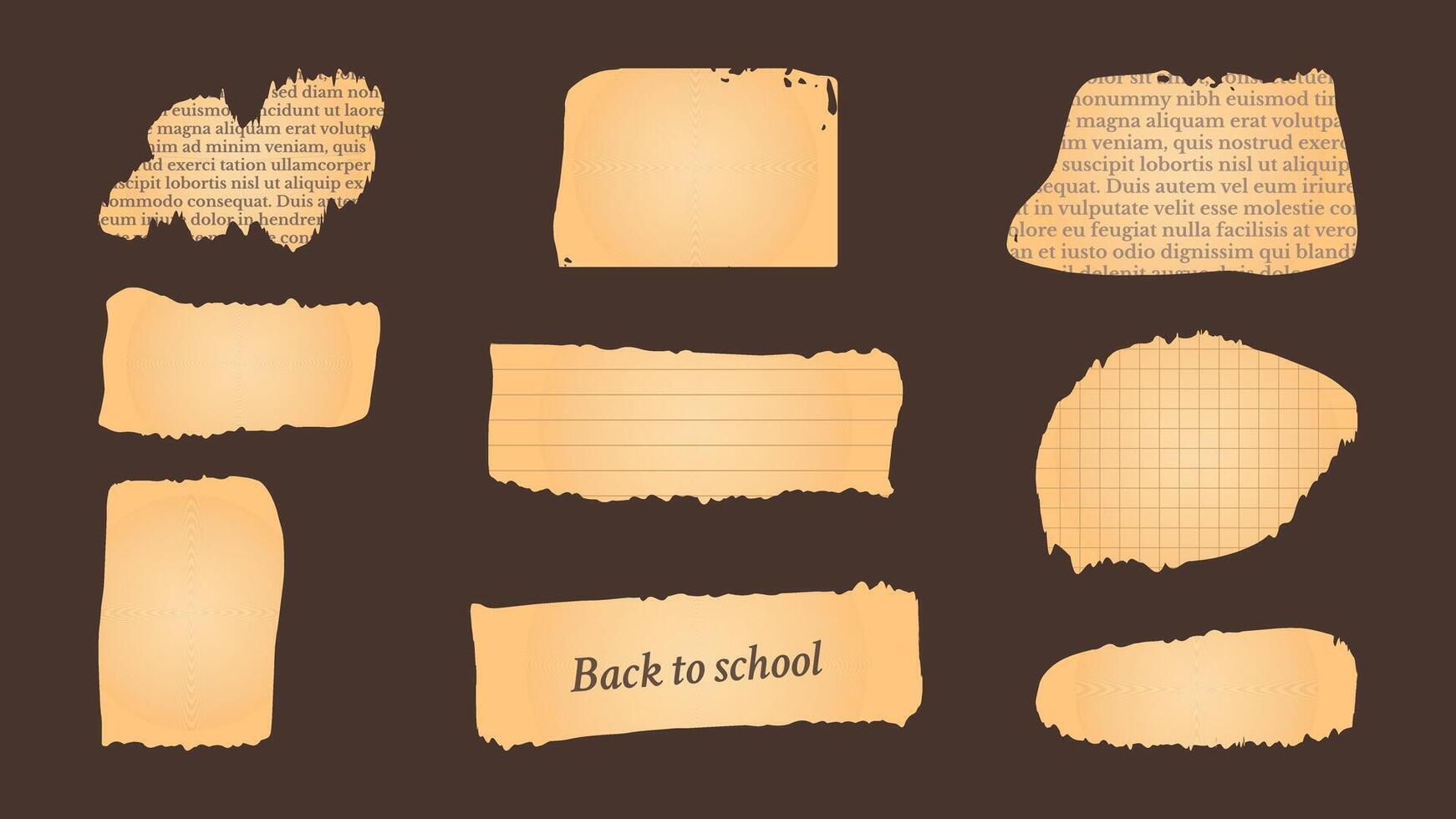 Paper and Elements scrapbooking Old torn crumpled. Elements for retro style collages. Different textures patterns ragged edges imitation of newspaper scraps. illustration. Pro Vector