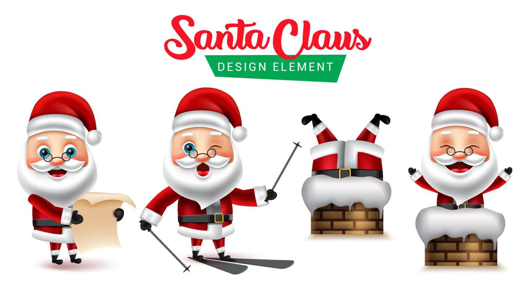Santa claus vector design element set. Santa claus character in reading wish list, stuck in chimney and skating activity pose and gestures for xmas collection design. Vector illustration. Pro Vector