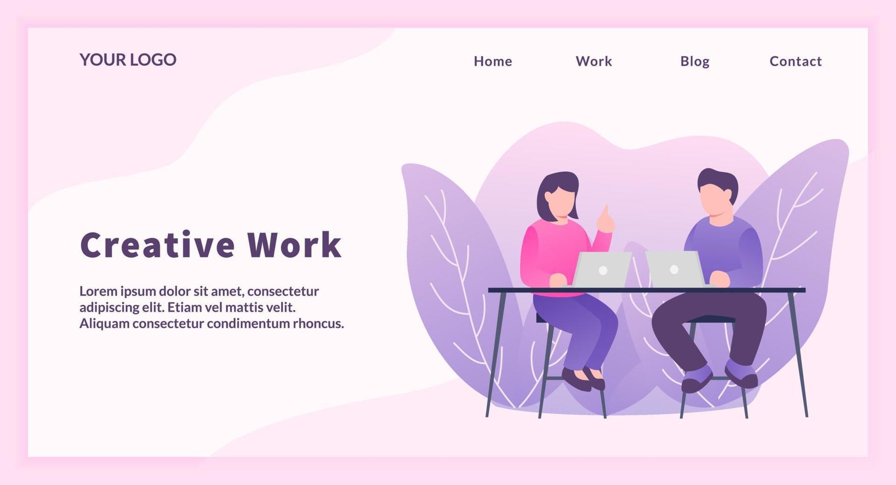 creative work concept with man and work on table discuss for website template or landing homepage vector