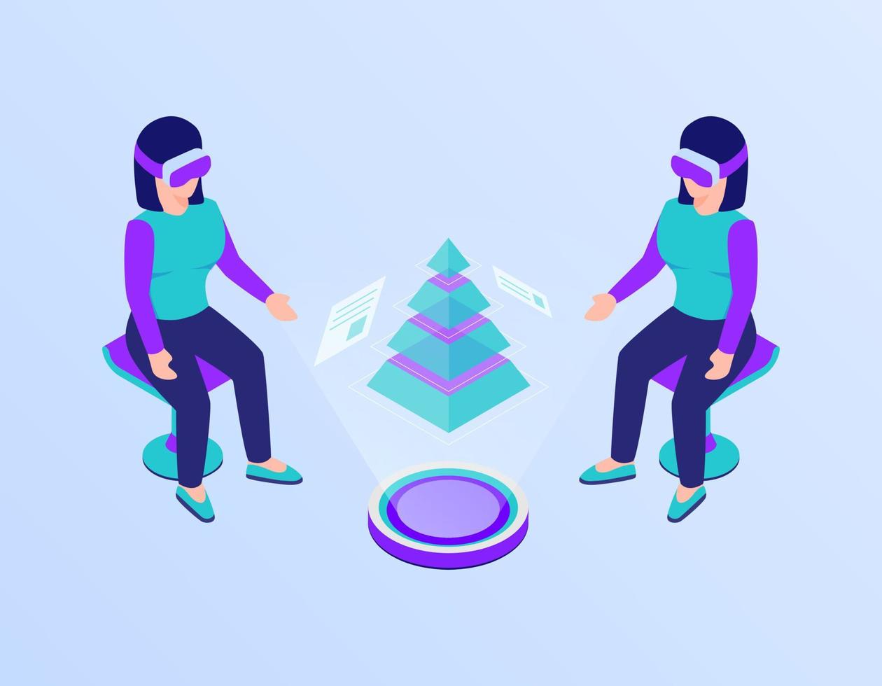 data graph and chart report summary presented in vr virtual reality glasses concept with isometric flat style Free Vector