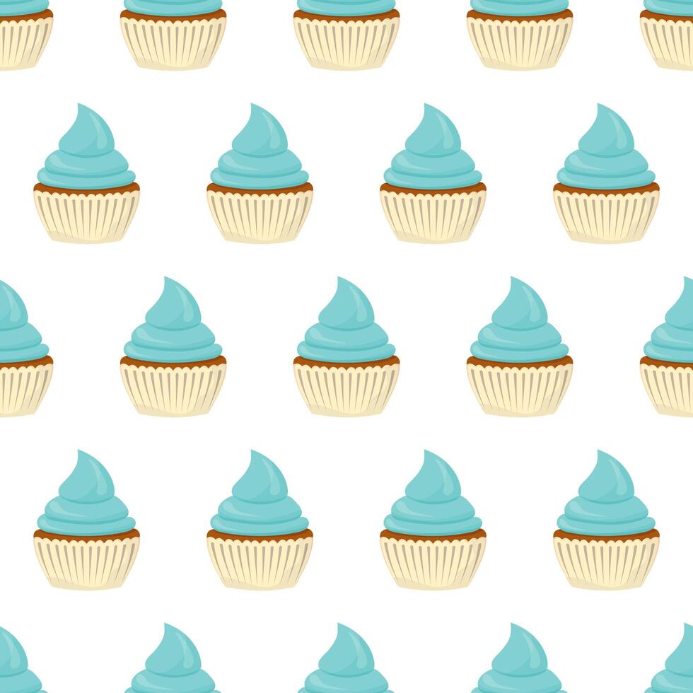 A seamless pattern with blue cupcakes on a white background Pro Vector