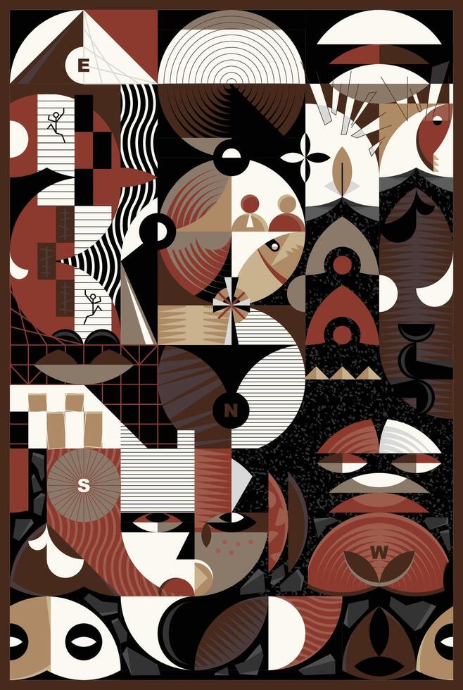 Mural collage, graphics pattern made with abstract forms and generative geometric shapes. Mosaic background in Bauhaus style. Useful for banner, cover, poster. Pro Vector