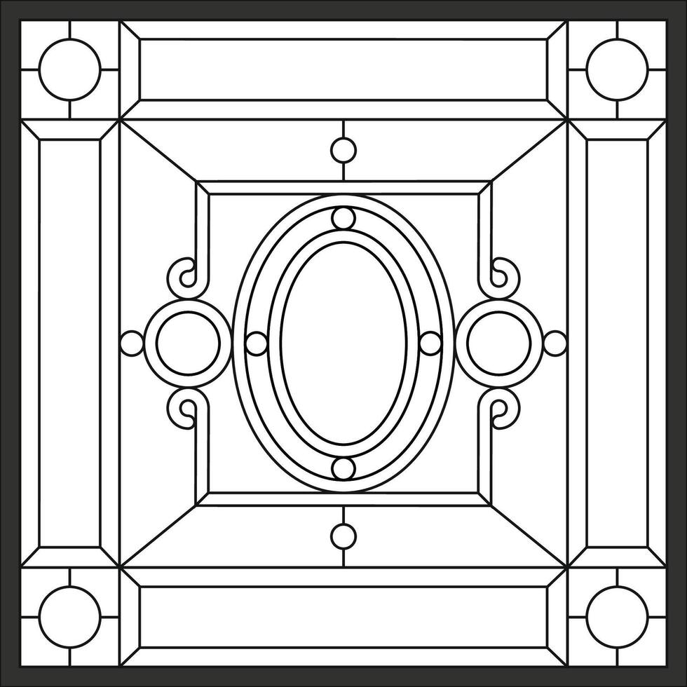 Stained glass in square frame, window on the ceiling in square frame, symmetric composition, panel for window. Outline Pro Vector