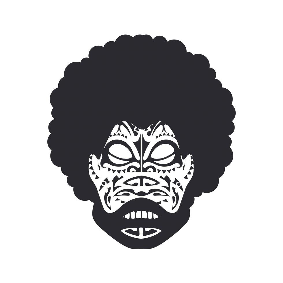 Polynesian pattern in the form of a mask on the face. Ancient mask of the tribes of May in a flat style. . Pro Vector