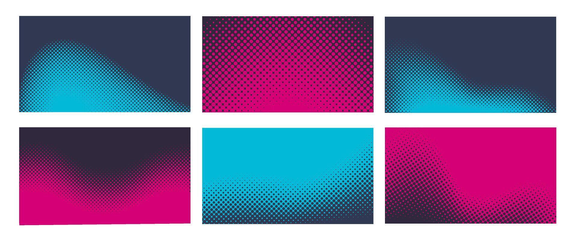 Halftone pattern wave background. Wavy duotone gradients, dynamic 16x9 backdrop isolated collection Pro Vector