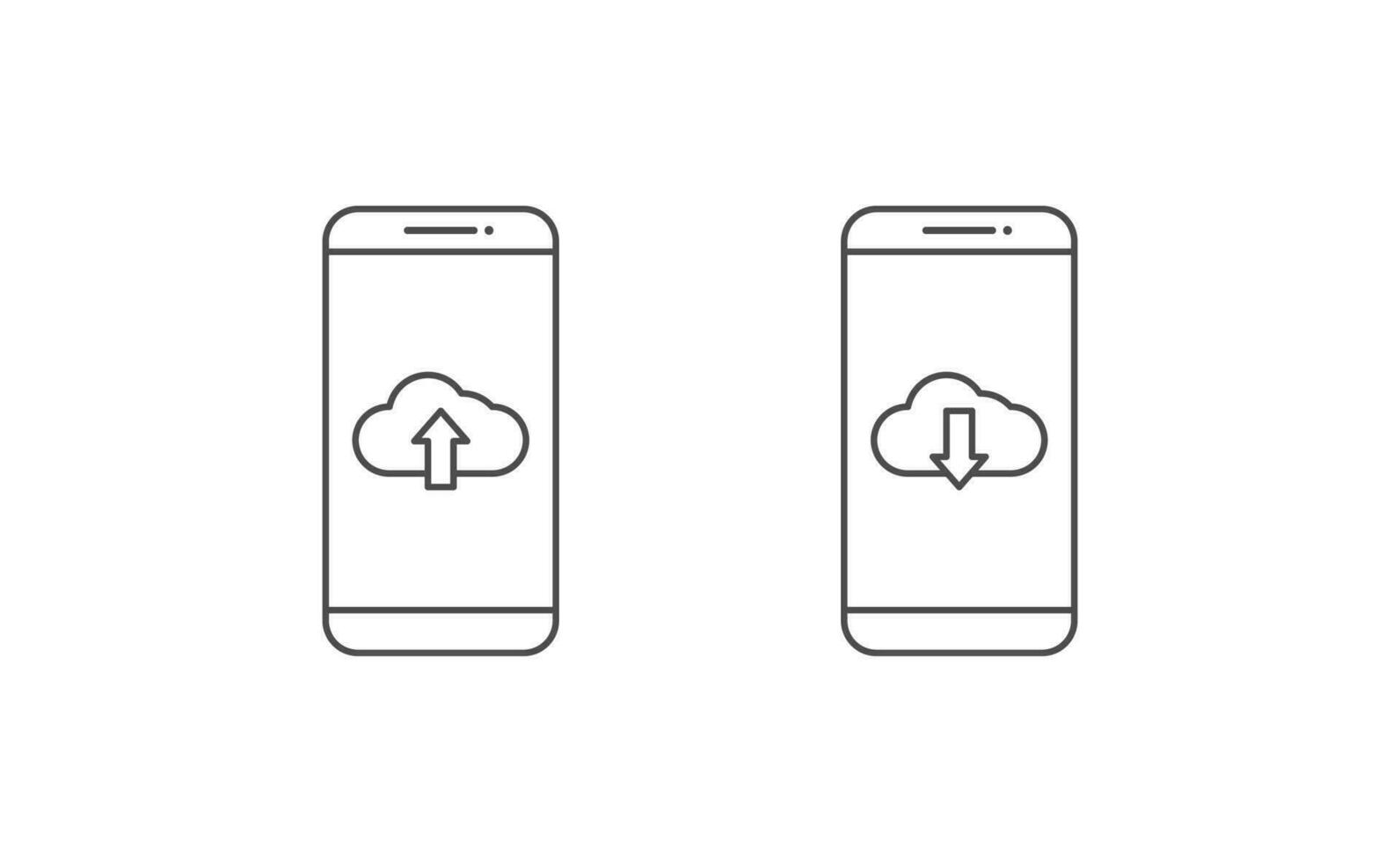 Smartphone and upload download icon line vector design, smartphone and cloud upload download icon line Pro Vector