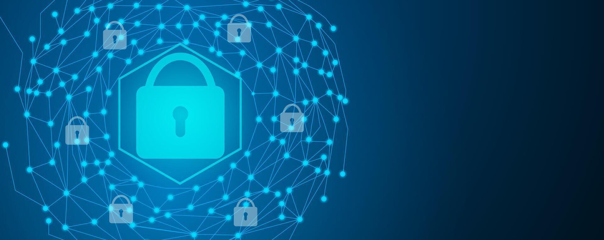 Cyber security background. Pad lock digital technology connecting abstract circuit board. Blue tech illustration Pro Vector